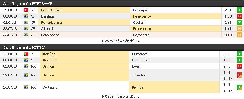 Trong khi đó Fenerbahce đã thua 5 trong 8 trận vừa qua trên sân nhà theo kèo châu Á. Với tương quan hiện tại giữa hai đội, nhiều khả năng Benfica sẽ lại có trận thắng tiếp theo trước Fenerbahce trong lần tái đấu đêm nay.