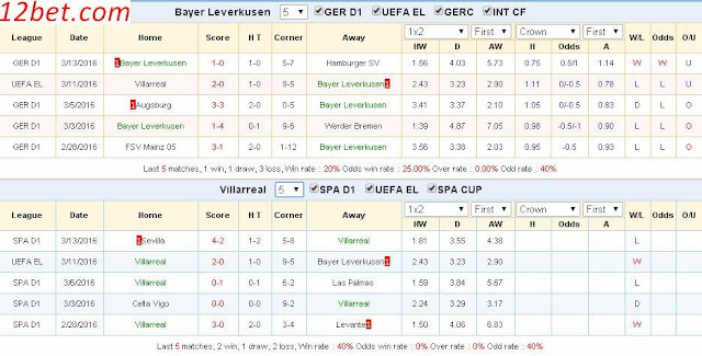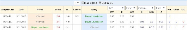 | Tip kèo thơm Europa League (vòng 1/8): Leverkusen vs Villarreal Thời gian: 01h ngày 18/03 Lượt đi Leverkusen 0-2 Villarreal Địa điểm: Sân nhà CLB Leverkusen