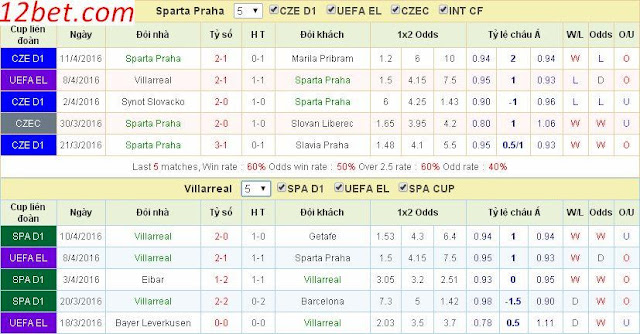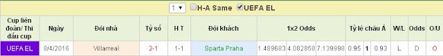 | Kèo chắc ăn hôm nay Europa League: Sparta Praha vs Villarreal Lượt đi Sparta Praha 1-2 Villarreal Thời gian: 02h05 ngày 15/04 Địa điểm: Sân nhà CLB Sparta Praha