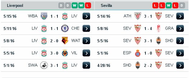 Theo châu Á, Liverpool chỉ thắng 2/7 trận gần đây, tuy nhiên Sevilla cũng chỉ thắng vỏn vẹn 2/10 trận vừa qua. Liverpool thắng 5/6 trận gần đây tại Europa League theo châu Á. Sevilla chỉ thắng 1/8 trận đấu xa nhà gần đây theo châu Á. Sevilla chỉ thua 1/5 trận gần đây tại Europa League theo châu Á.