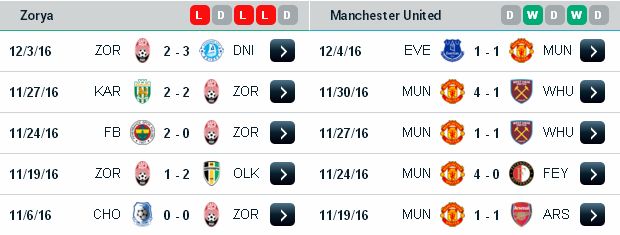 - MU thắng 3 trong 4 trận gần nhất tại Europa League - Zorya thua 3 hòa 1 trong 4 trận gần nhất. Tính cả trận thua 0-1 lượt đi thì con số trận thua lên 4