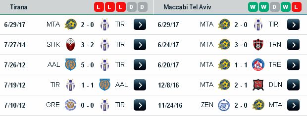 | Soi kèo cá độ Europa League - Vòng sơ loại thứ nhất: Tirana (Albania) vs Maccabi (Israel), 22h ngày 06/7/2017. Lượt đi Tirana thua Maccabi 0-2