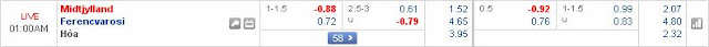 Dự đoán kèo cá cược Midtjylland vs Ferencvaros 0h, 21/7/2017