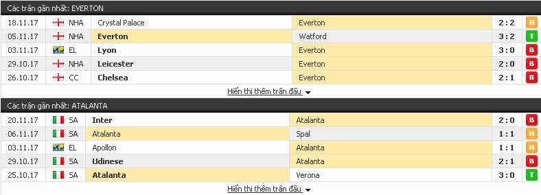 Trong khi đó, Atalanta hành quân tới sân của Everton với mục đích chỉ cần 1đ sẽ đủ điều kiện giành vé vào vòng 1/16. Tuy nhiên bản thân của đội bóng cũng đang ở điểm rơi phong độ với 4 trận liên tiếp không thắng.