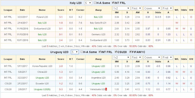 | Dự đoán kèo cá cược World cup U20 - 2017: U20 Ý vs U20 Uruguay, 18h ngày 21/5/2017