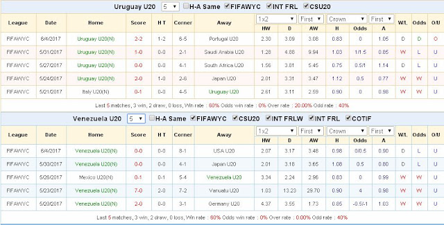 | Soi kèo cá độ Bán kết World cup U20 năm 2017: Uruguay vs Venezuela, 15h ngày 8/6/2017. Tổ chức tại Hàn Quốc