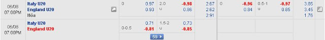 Xem giá tiền mới nhất của kèo U20 Ý+0