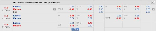 Cặp đấu lượt cuối bảng A còn lại nhiều khả năng Bồ Đào Nha sẽ thắng New Zealand nên 99% họ sẽ giành vé đi tiếp. Như vậy Mexico vs Nga mà nói, Mexico cần ít nhất 1đ còn Nga cần tới 3đ trọn vẹn ở trận đấu này mới được vào vòng bán kết. Với thế trận này bất kể đội nào có được bàn thắng trước sẽ co cụm về phòng ngự bảo toàn kết quả. Xỉu sẽ là một phương án chọn kèo hợp lý trận này.