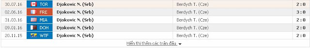 4. Tomas Berdych vs Novak Djokovic (21h ngày 12/7/2017)