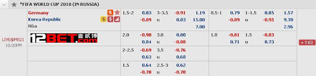 Đức chấp cao lên mức 1.75 nhưng khá hợp lý bởi họ cần thắng cách biệt từ 2 bàn trở lên để giành tấm vé đi tiếp cho mình. Với đẳng cấp cao hơn hẳn thì đây cũng là việc Đức làm được nhất là khi Hàn Quốc chính thức bị loại khỏi giải đấu.