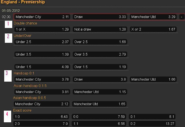 Ở mục bên phải sẽ hiện ra ***c trận đấu trực tiếp để lựa chọn [URL="http://us.i1.yimg.com/us.yimg.com/i/mesg/emoticons7/1.gif"] [/URL]. ấn nút mũi tên đi xuống để hiện đầy đủ. ***c bạn chọn đội vào đó sẽ hiện ra ***c kèo để ***c bạn bet như: 3way - result: kết quả cuối cùng thắng hòa thua. With team will score the first goal in the 1st half? : kết quả của hiệp một With team will score the first goal in the 2st half? : kết quả của hiệp Hai How many goals will be scored?: có bao nhiêu bàn thắng( có thể có tỉ số chính xác, under over cho bạn chọn) Handicap :cược chấp Which team will score the nextgoal? đội nào sẽ ghi bàn trước? có cả trận và hiệp 1. How many goals will team 1 score?: đội thứ nhất sẽ có bao nhiêu bàn How many goals will team 2 score? Đội thứ 2 sẽ có bao nhiêu bàn( đội 1 là đội chủ nhà - 2 là đội khách) How many goals will team 1 score in the 1st half? đội 1 sẽ có bao nhiêu bàn trong hiệp 1 How many goals will team 1 score in the 2st half? đội 2 sẽ có bao nhiêu bàn trong hiêp 1 How many games will be played in the 1 - 15, 15 - 30 30-halftime. halftime - 60, 60 - 75, 75 - finish đây là cược có bàn thắng trong khoảng thời gian đó.