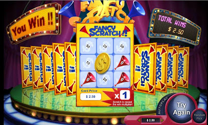 Cách thức chơi Fancy Scratch thì khá đơn giản. Bạn chọn một tấm thẻ và cào 09 ô vuông trong tấm thẻ đó. Nếu có 03 con số giống hệt nhau bạn sẽ chiến thắng. Theo kinh nghiệm chơi khá lâu từ mình để thắng game này bạn chị cần lấy giấy bút ra ghi số thẻ bạn đã lật và số lần chiến thắng, đảm bảo bạn sẽ thấy được quy luật để thắng tiền scacth này.