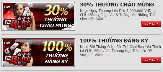 Nhận Ngay Thưởng Lên Đến 3,000,000 VND tại CLB 12Ruby,Cược Vui & Thắng Lớn Những Trò Chơi Hấp Dẫn!