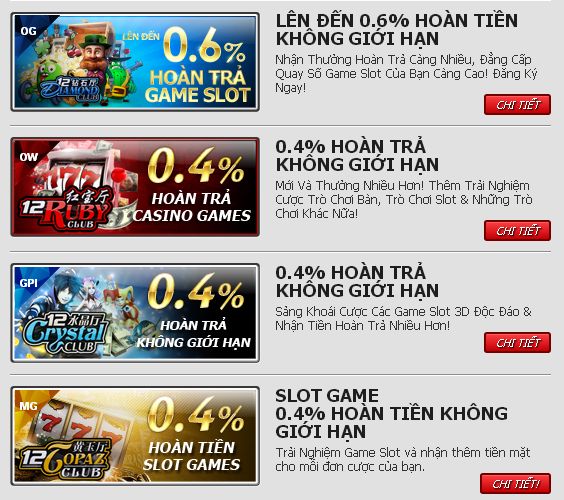 | Khuyến mãi hoàn trả không còn xa lạ gì với thành viên đang có tài khoản tại 12bet. Điều hấp dẫn ở đây là mọi hình thức chơi đều có khuyến mãi hoàn trả tương ứng. Cách thức nhận thưởng khá đơn giản và có sự hỗ trợ rất nhanh bởi đội ngũ tư vấn viên làm việc 24h trong ngày. Hứa hẹn sẽ mang đến bạn niềm vui bất tận trong cá cược trực tuyến. Tham gia khuyến mãi tại đây