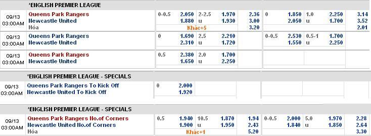 QUEENS PARK RANGERS 2-2.5 1.970 NEWCASTLE UNITED U 1.930 Bạn Cược 1 Triệu - Thắng 1 Triệu 930