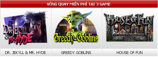 - Thành viên có thể sử dụng 31 vòng quay miễn phí chơi 3 game (Dr. Jekyll & Mr. Hyde; Greedy Goblins và House of Fun).