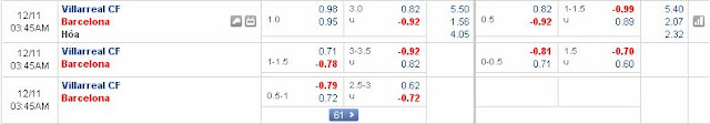 1. La liga: Villarreal vs Barcelona, 02h45 ngày 11/12/2017. Chọn Barcelona -1
