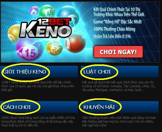 Mọi hướng dẫn 12bet Keno làm rất tỉ mỉ và có ví dụ trực quan. Các anh chị chỉ cần CLICK vào mỗi mục cần tìm hiểu.