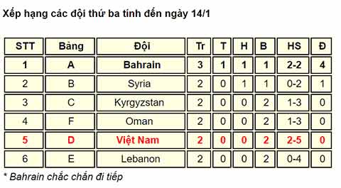 Cơ hội vượt qua vòng bảng của Việt Nam cũng vì thế mà hẹp lại khi chúng ta đang đứng ở hạng 5 trên 6 đội xếp thứ ba của các bảng, vị trí mà nếu giữ nguyên sẽ phải rời cuộc chơi.