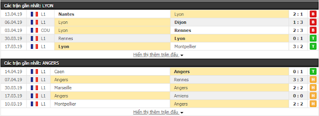 - Lyon ra sân đội hình gần như mạnh nhất (ngoại trừ hậu vệ Mendy chấn thương). Tính phong độ sân nhà khá tốt thắng 4/5 trận gần nhất và một điểm đáng chú ý họ bất bại trong 6 lần chạm trán với Angers trong đó 4 thắng và 2 hòa